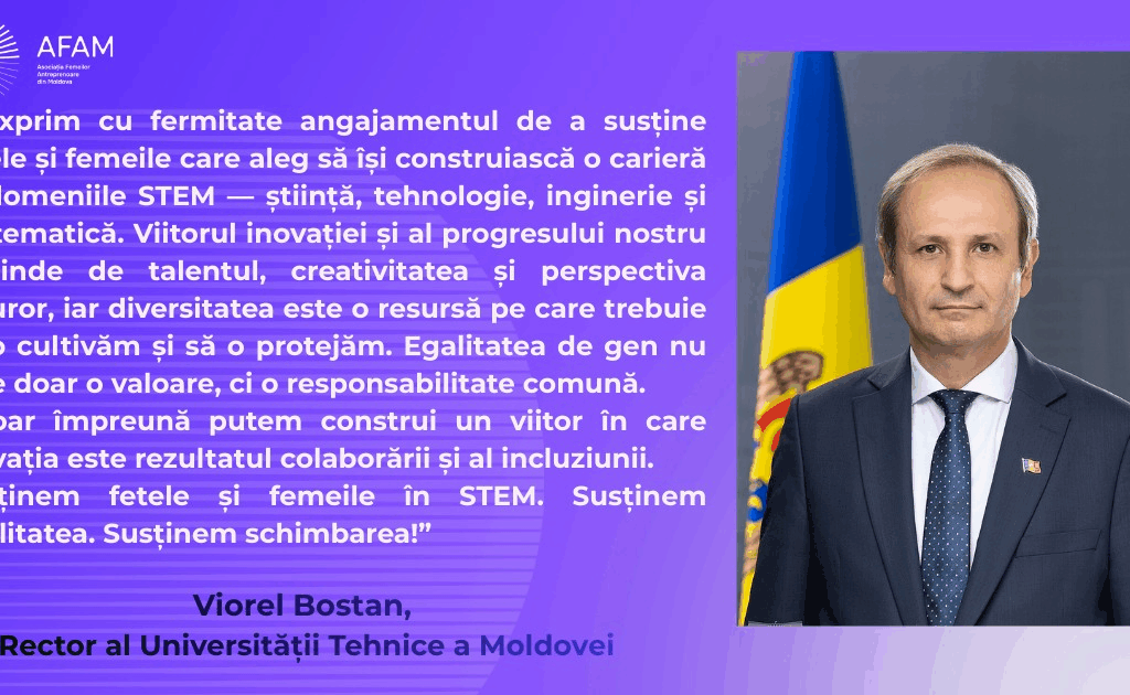 „În calitate de Rector al Universității Tehnice, îmi exprim cu fermitate angajamentul de a susține fetele și femeile care aleg să își construiască o carieră în domeniile STEM — știință, tehnologie, inginerie și matematică. Viitorul inovației și al progresului nostru depinde de talentul, creativitatea și perspectiva tuturor, iar diversitatea este o resursă pe care trebuie să o cultivăm și să o protejăm.
